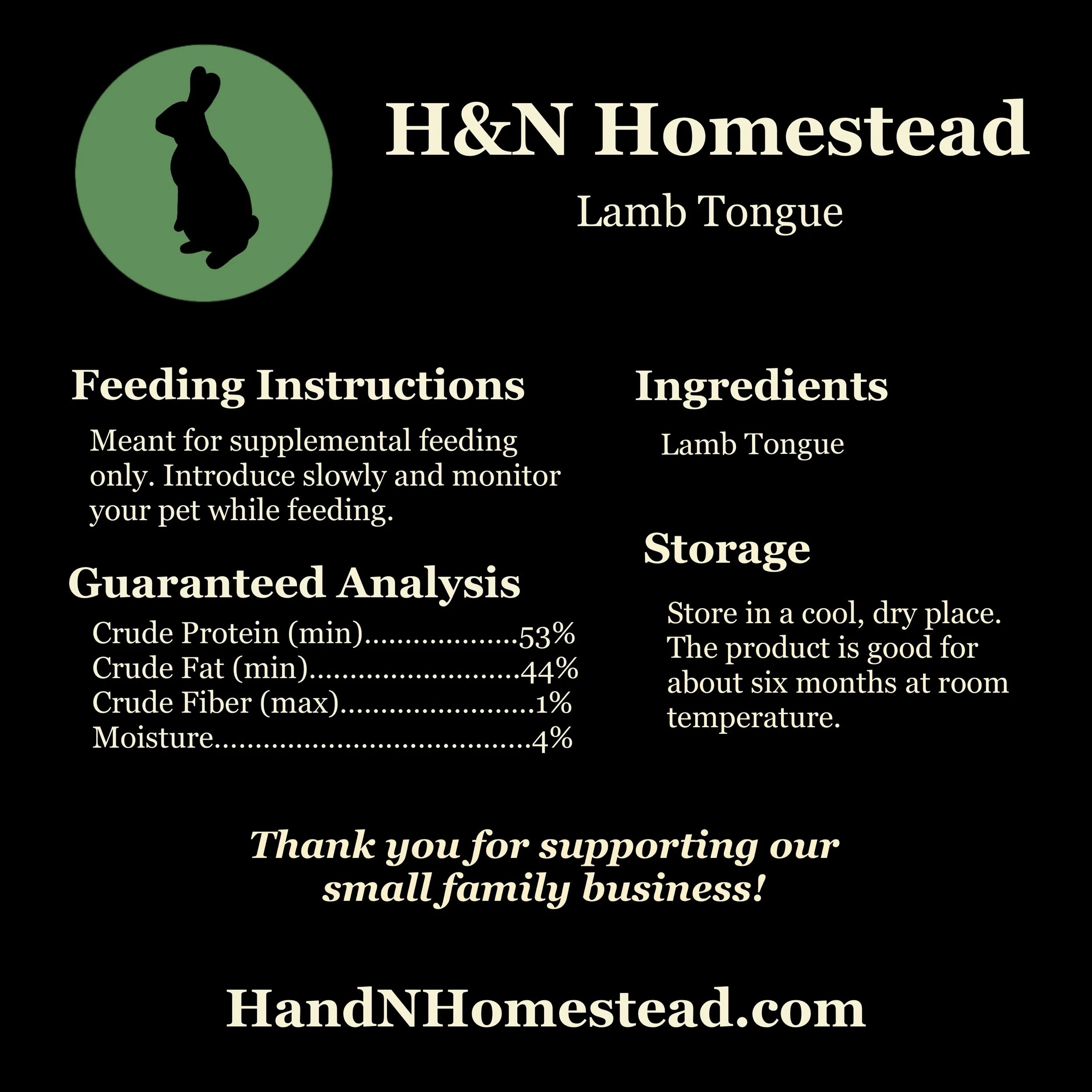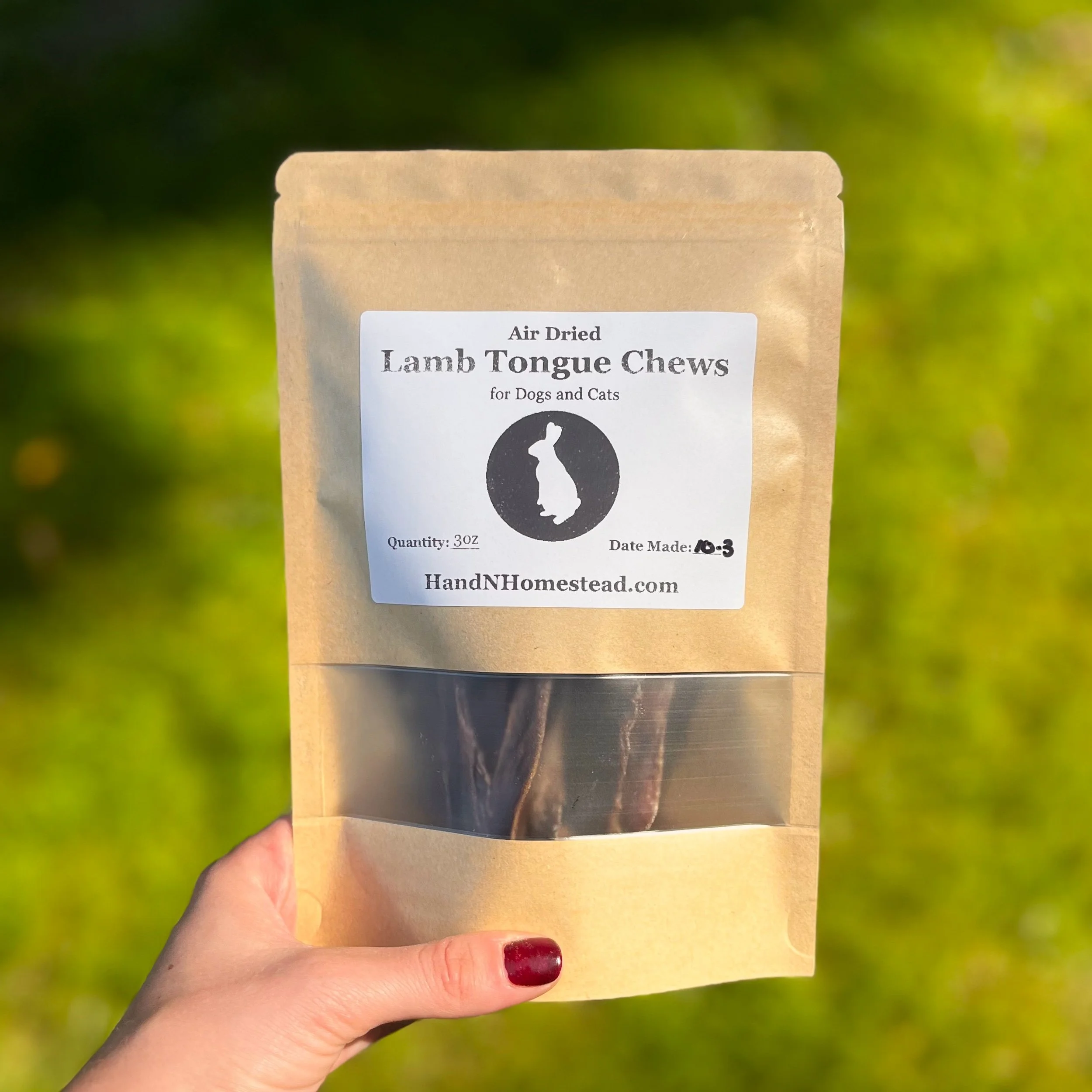 Our lamb products are sourced in Wisconsin from a small family butcher, rinsed with water, and air dried in our home. For storage, please place in a cool, dry place.