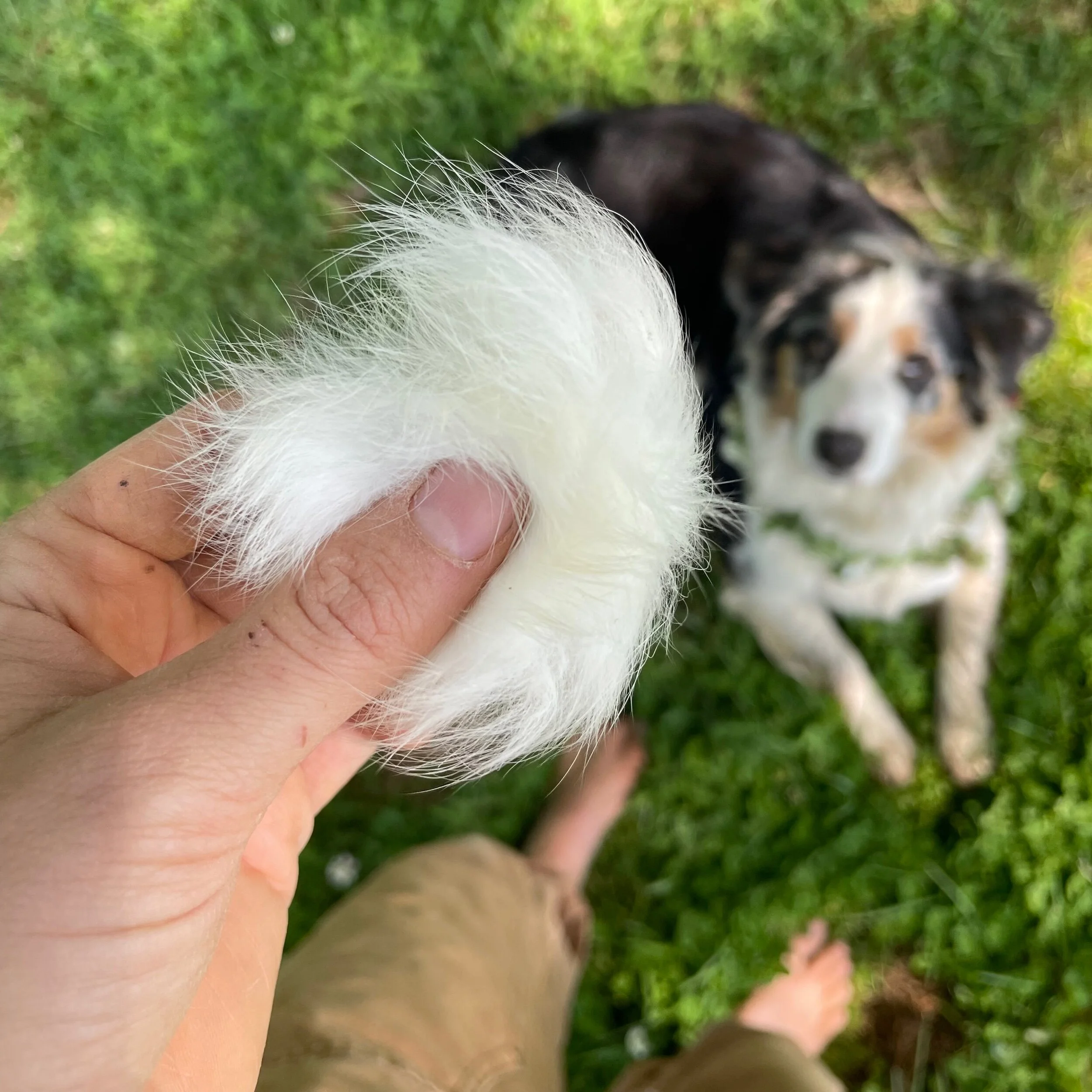 Rabbit fur can be a natural dewormer. As it passes through the digestive system, it can pick up any worms/ eggs and undigested food, improving digestion. It is also a great teeth-cleaning tool and rich in beneficial vitamins and minerals.